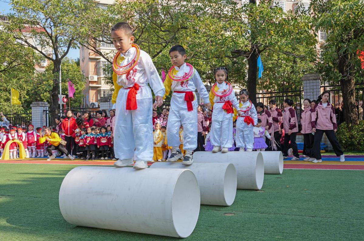 近日,福建省泉州市泉港区后龙中心幼儿园开展了以“运动与健康”为主题的第九届体育节。为期两周的体育节期间,孩子们根据自己的年龄特点,兴奋地参加了龙狮、挑绳、趣味滚轴等各项技能表演。他们还进行了拔河、投球、扔沙袋等有趣的比赛。他们白天感受运动的快乐,让孩子在快乐的运动中绽放健康和活力。
